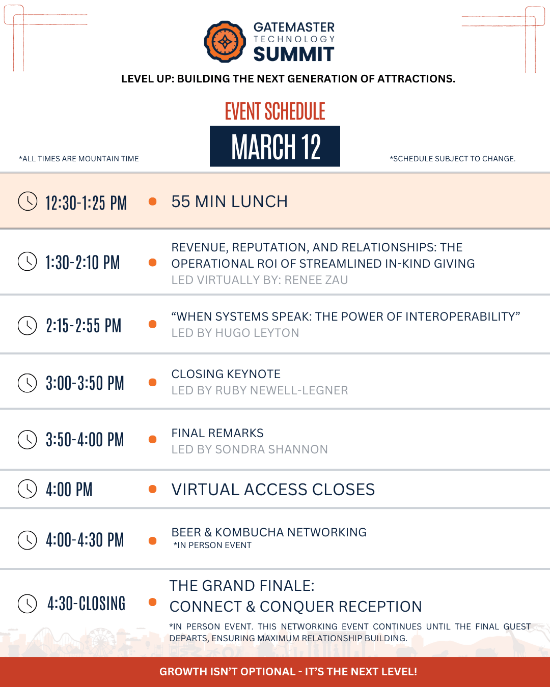 This is our second annual GT Summit, and we are building on last year’s overwhelming success to deliver an even more powerful, two-day event. While the Summit format is new, we bring a rich history of successful, high-value gatherings, including our popular “Gear Up Parties” (100+ attendees) and the acclaimed “Live with Sondra” series, which has hosted over 60 influential guests like Jakob Wahl and our 2026 Keynote, Ruby Newell-Legner!